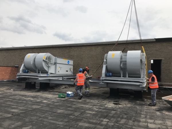 Montage van koelgroepen op dak, inclusief productie van ondersteunende structuren.